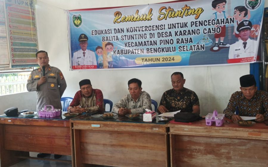 Jalin Hubungan Kerja yang Solid, Polsek Pino Raya Hadiri Rapat Kerja Mini Lokakarya Pengendalian Stunting Desa Karang Cayo