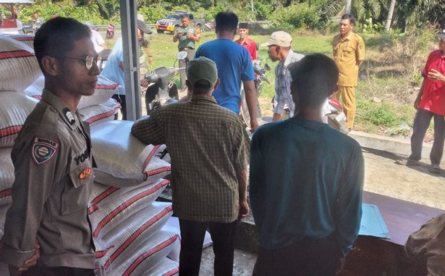 Bhabinkamtibmas Polsek Manna Menghadiri Kegiatan Pembagian Beras Ketahanan Pangan di Desa Padang Brunai