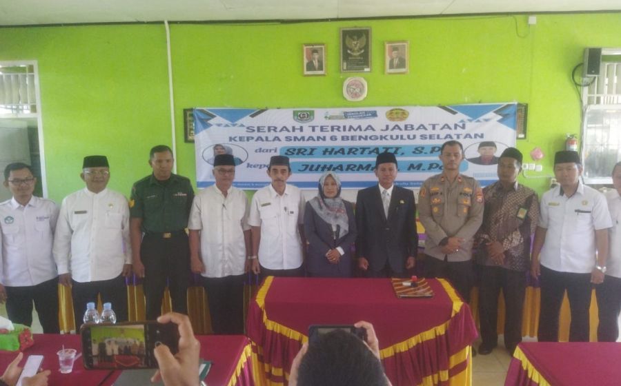 Kapolsek Manna dan Bhabinkamtibmas Polsek Manna Menghadiri Undangan Serah Terima Kepala Sekolah SMAN 06 BS