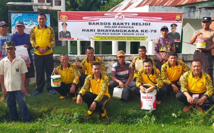 Sambut Hari Bhayangkara ke-78, Polsek Kaur Tengah Gelar Bakti Religi Bersih-bersih di Rumah Ibadah