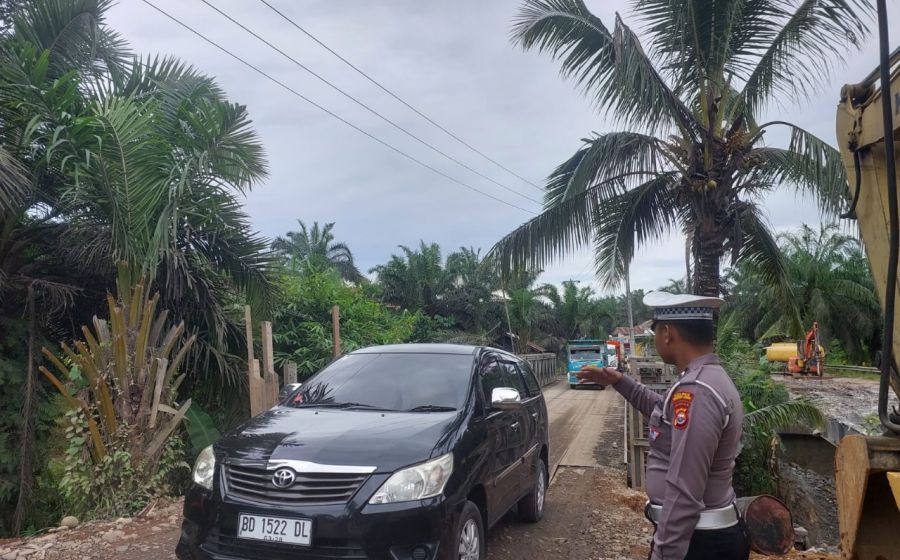 Patroli Polsek Ketahun Sambangi Pembangunan Jembatan Desa Giri Kencana