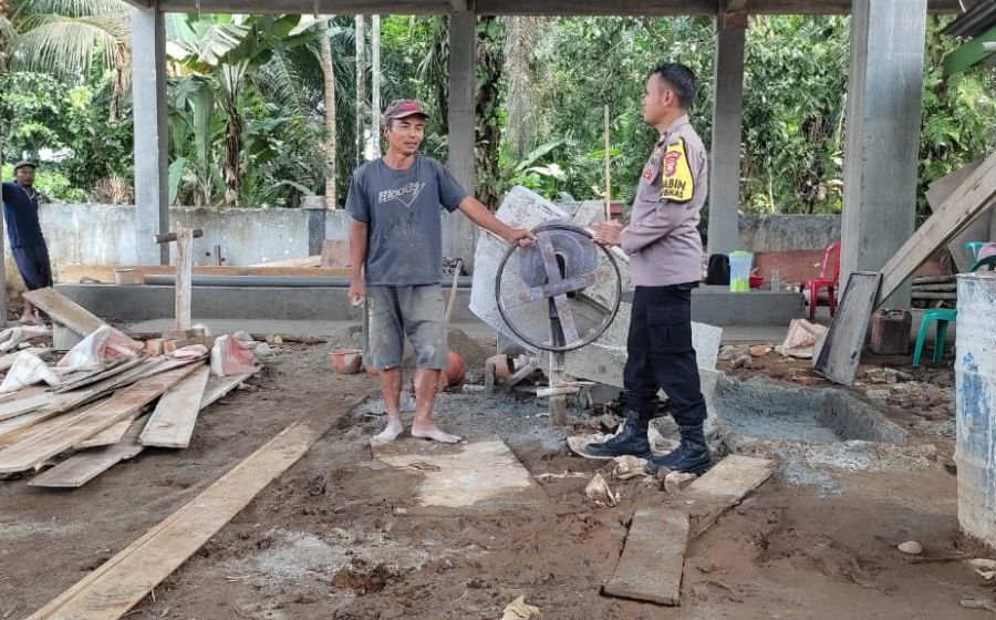 Sambang ke Pekerja Bangunan, Bhabinkamtibmas Polsek Padang Jaya Sampaikan Imbauan Kamtibmas