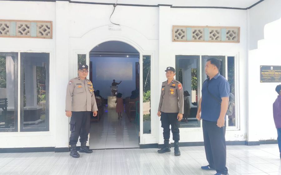 Pastikan Keamanan Gereja, Personel Polsek Padang Jaya Laksanakan Pengamanan Ibadah Natal Tahun 2023