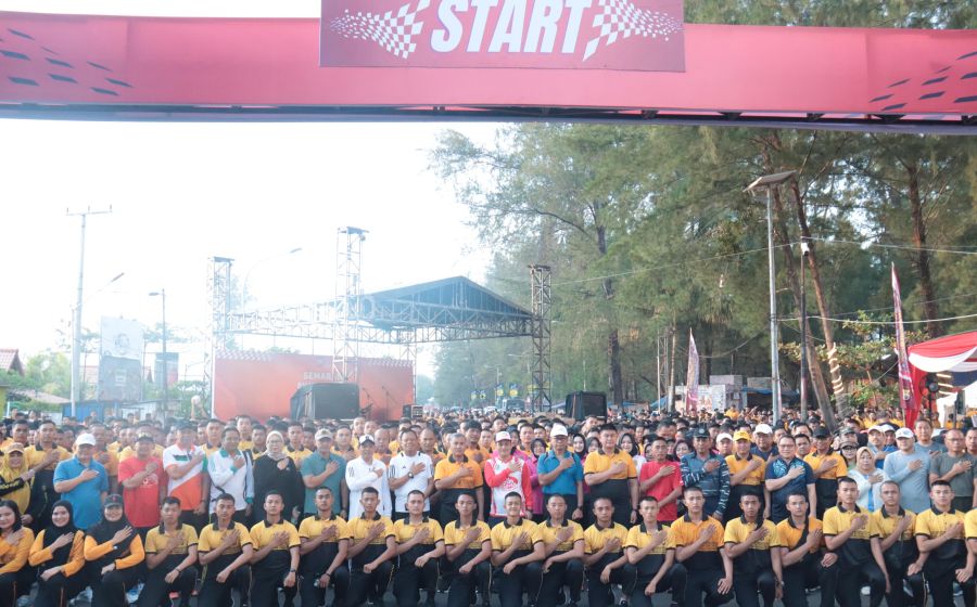 Polda Bengkulu Gelar Semarak Bhayangkara dalam Rangka HUT Bhayangkara ke-79 : Kapolda Bengkulu Buka Kegiatan Jalan Santai