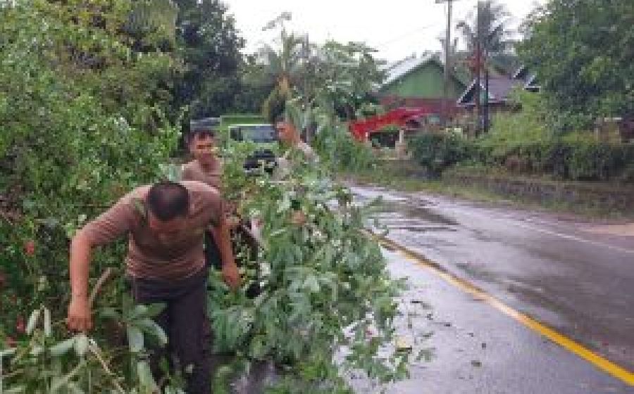Cegah Lakalantas, Polsek Taba Penanjung Bersihkan Badan Jalan Terhalang Pohon Tumbang