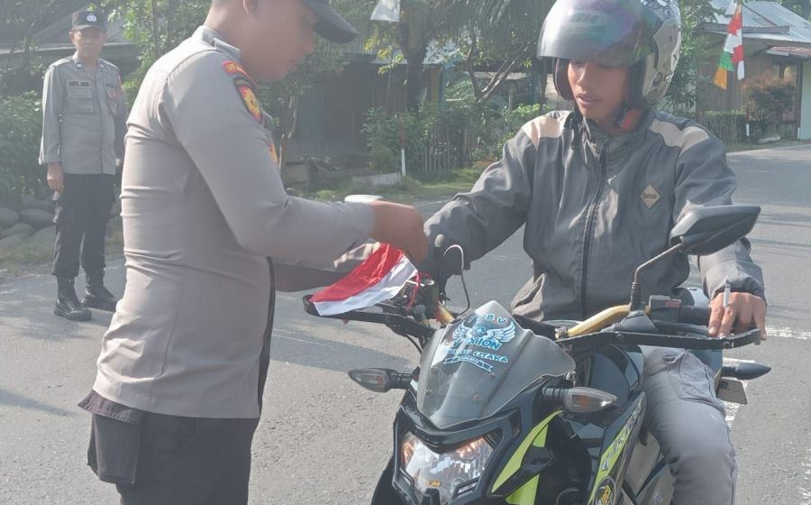 Tingkatkan Rasa Nasionalisme Polsek Batiknau Bagikan Bendera Merah Putih