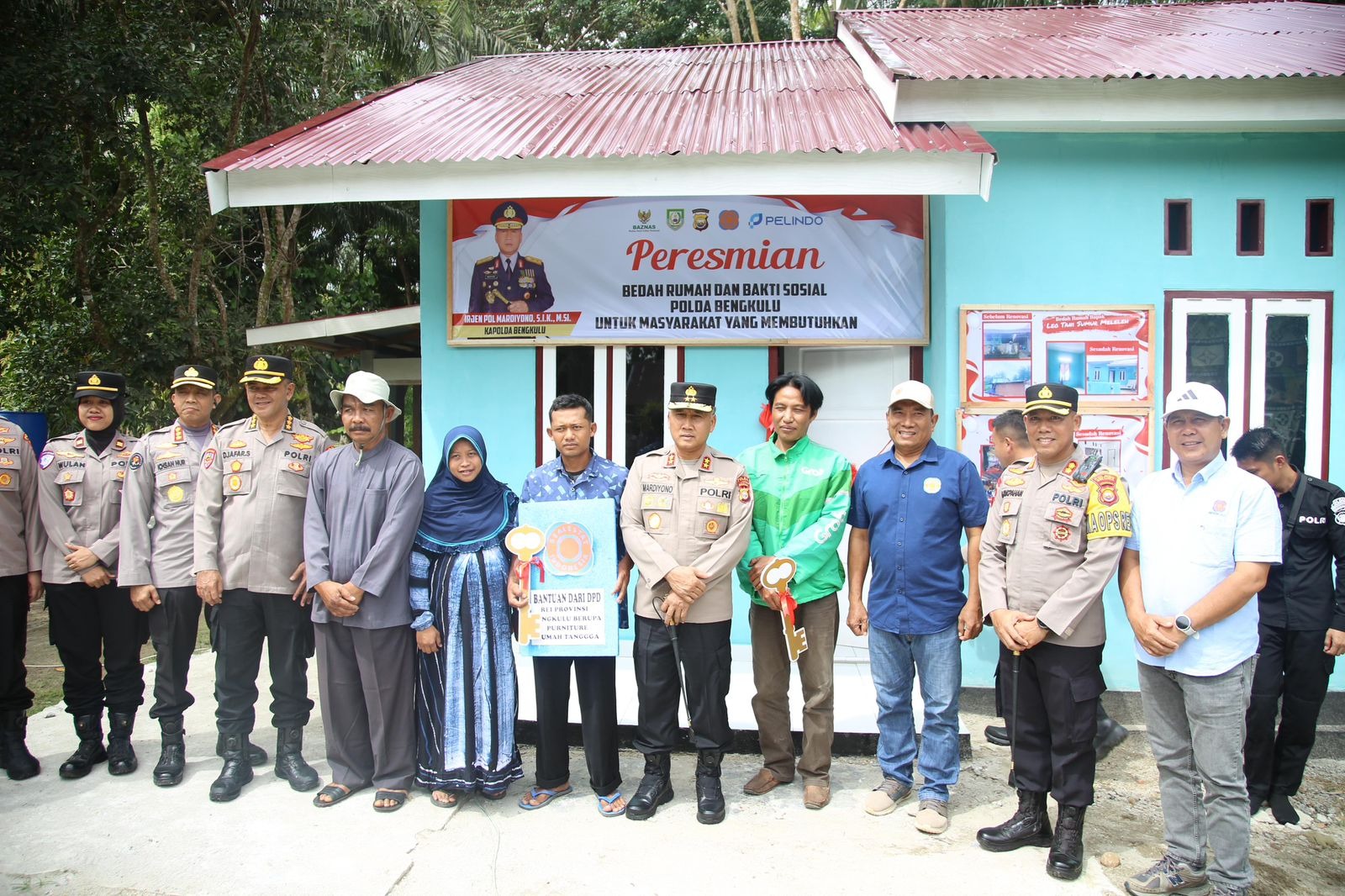 Selain meresmikan rumah, Kapolda Bengkulu juga menyerahkan bantuan sembako kepada warga sekitar sebagai bagian dari bakti sosial.