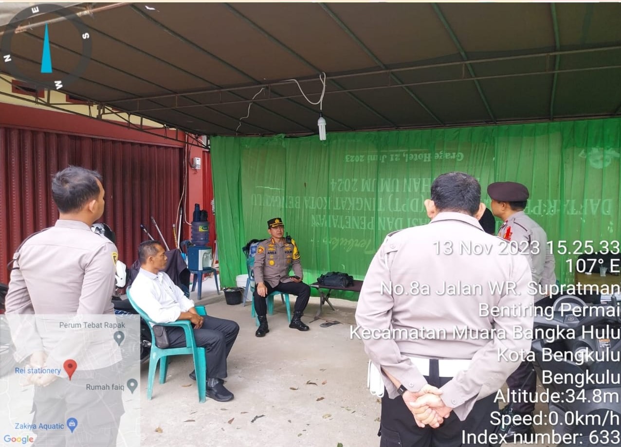 Bengkulu - Kapolresta Bengkulu Kombes Pol Aris Sulistiyono., S.H., M.H., bersama Kasat Intelkam Polresta Bengkulu Polda Bengkulu, melaksanakan Patroli sambang ke kantor KPU Kota Bengkulu dan Gudang Logistik KPU Kota Bengkulu,  Senin(13/11/2023) sore.