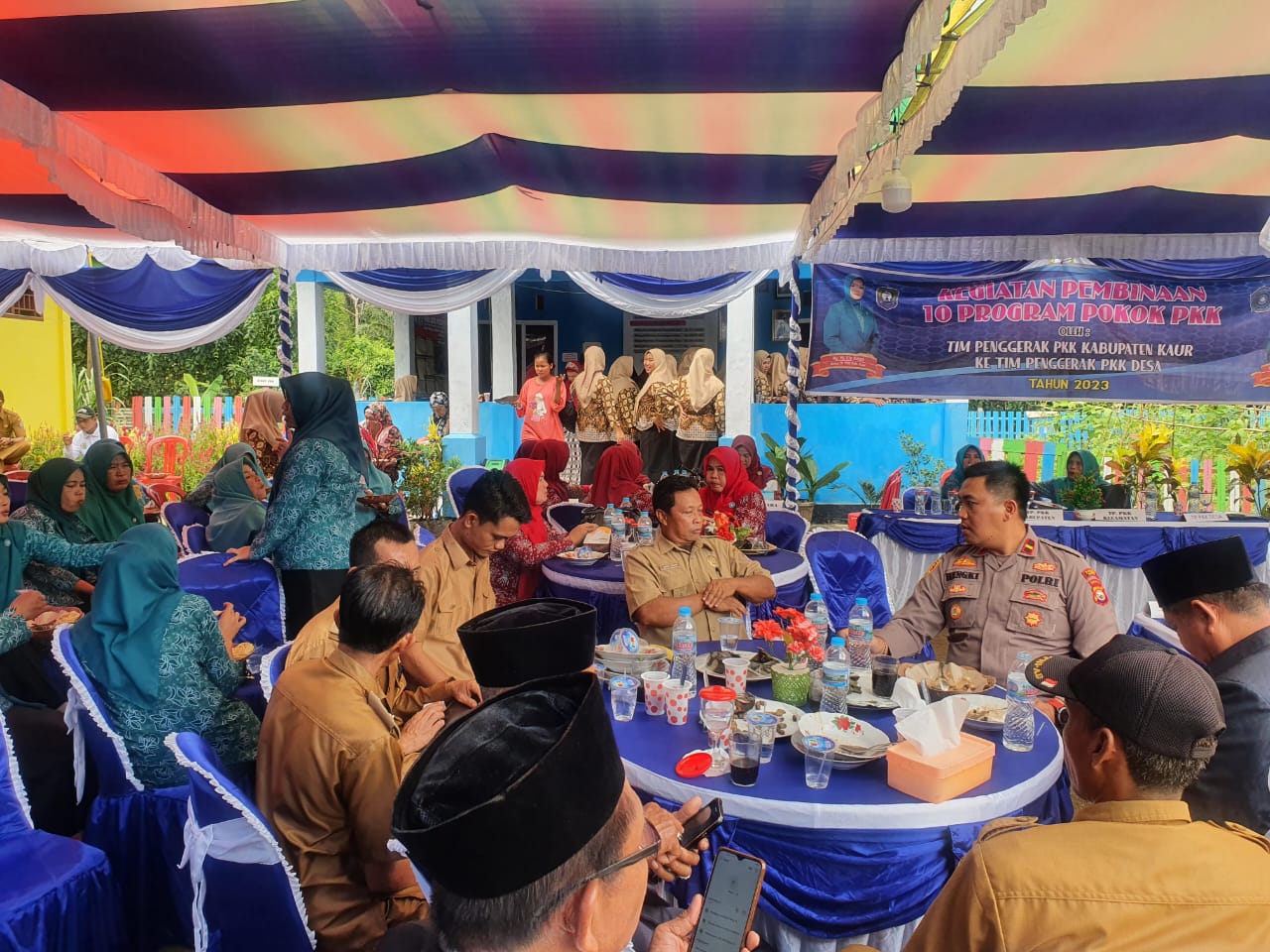 Kau - Polsek Padang Guci Hulu Polres Kaur menghadiri kegiatan pembinaan 10 program pokok PKK oleh Tim penggerak PKK kabupaten di Desa Pagar Gunung kecamatan Padang Guci Hulu kabupaten Kaur, Senin (10/07/2023) Sekira Pukul 09.00 WIB.