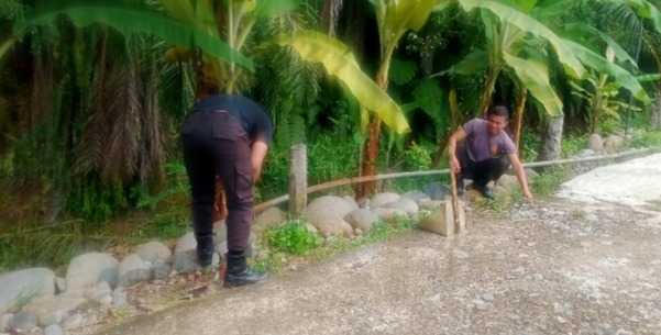Kompak, Personel Polsek Muara Sahung Laksankan Kebersihan di Lingkungan Sekitar Mako