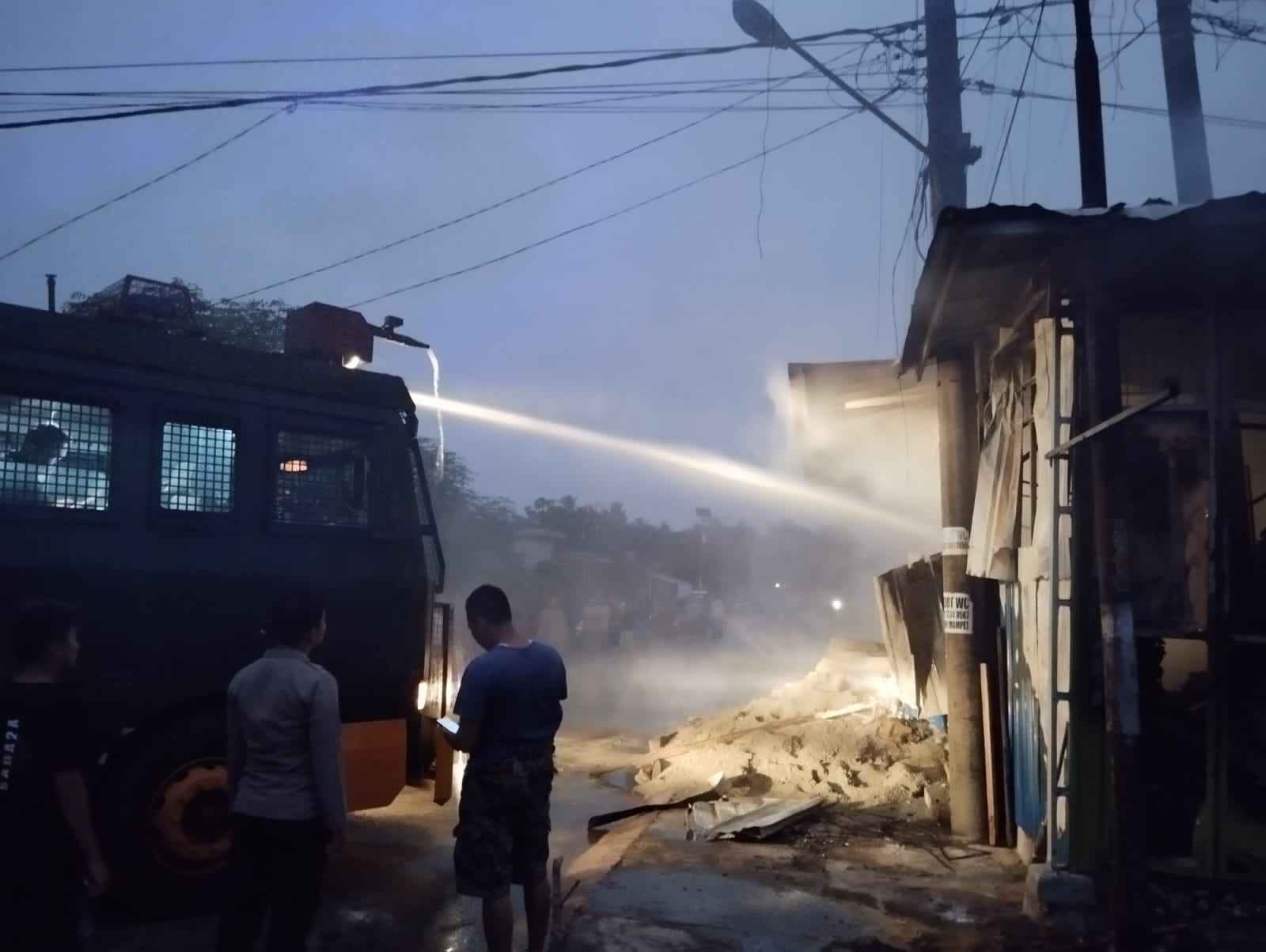 Mobil Water Cannon Polres Kaur Bantu Padamkan Api Kebakaran Ruko Manisan