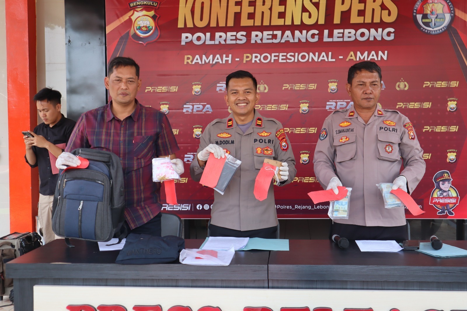 Kapolres Rejang Lebong Polda Bengkulu AKBP Juda Trisno Tampubolon, melalui Kapolsek Sindang Kelingi Iptu Dodi Mardiansyah, didampingi Kasi Humas Iptu Sinar Simanjuntak dan Kanit Reskrim Ipda Udi Handoko saat press release di Mapolres, Kamis (5/10/2023) menyampaikan, tersangka ditangkap pada Jumat (29/9/2023) dini hari, setelah dilaporkan oleh keluarga korban pada Jumat siang.