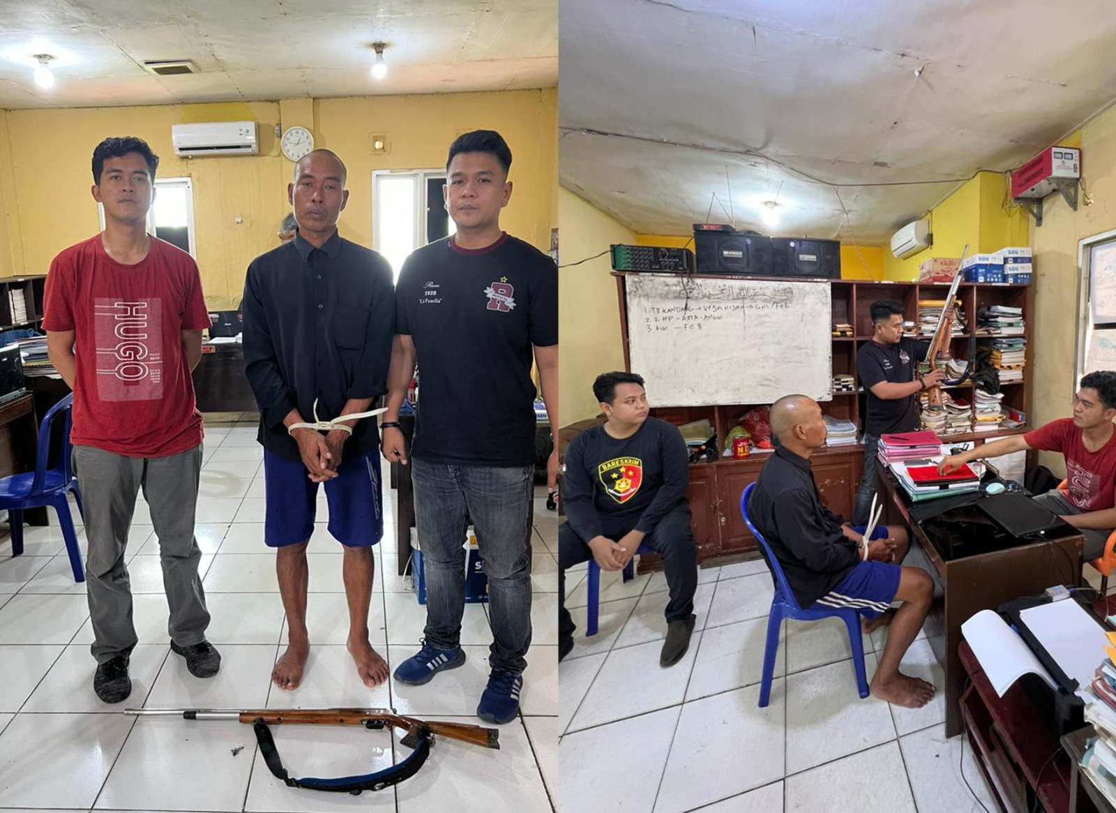 "Saat mendatangi korban, terduga pelaku sudah membawa senapan angin laras panjang sambil menanyakan siapa yang membuat anjing dan ayamnya mati. Kemudian, terduga pelaku menuding korban adalah penyebab anjing dan ayamnya mati, dan langsung menembak korban dengan senapan angin," terang Wakapolres.