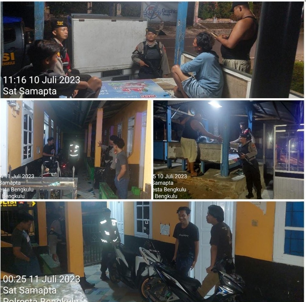 dan Briptu Rianto Ginting, melaksanakan patroli mobiling di seputaran Kota Bengkulu guna antisipasi tindak pidana 3C, Senin (10/07/2023) malam .