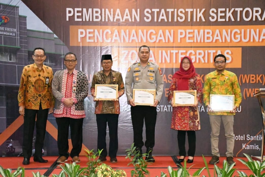 Penghargaan ini disampaikan usai pencanangan pembangunan zona integritas menuju Wilayah Bebas Korupsi (WBK) dan Wilayah Birokrasi Bersih Melayani (WBBM) BPS Kota Bengkulu.