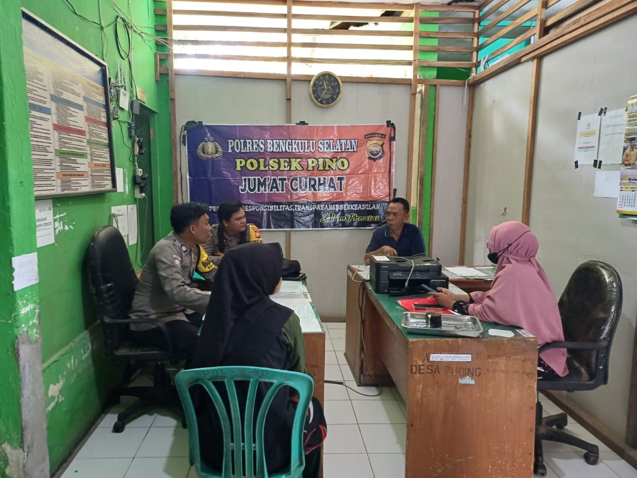 Bengkulu Selatan - Polsek Pino Polres Bengkulu Selatan Polda Bengkulu, melaksanakan Jumat Curhat, di Desa Padang Lebar Kecamatan Pino Kabupaten Bengkulu Selatan, Jumat (22/09/23) pagi.