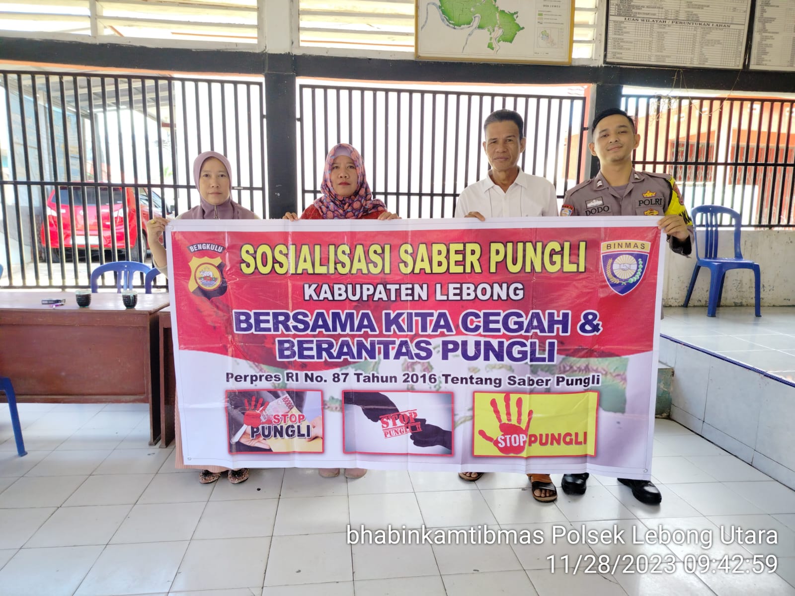 Lebong - Personel Polsek Lebong Utara Polres Lebong Polda Bengkulu, Brigpol Ary Saputra dan Briptu Rivan Rivaldo, melaksanakan kegiatan sosialisasi Saber Pungli di Desa Lemeu, Kecamatan Uram Jaya Kabupaten Lebong, Selasa (28/11/2023).