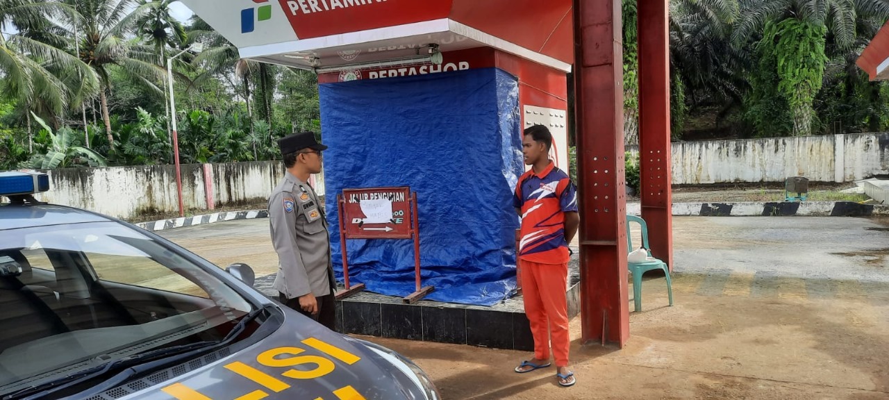 Personel Polsek Padang Jaya Patroli Dialogis Pengecekan Stok BBM di Pertashop