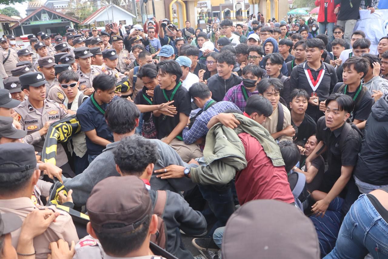 Polda Bengkulu Bersama Polresta Bengkulu Laksanakan Pengamanan Maksimal Aksi Unjuk Rasa Cipayung di DPRD Provinsi Bengkulu