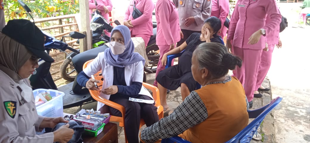 Polres BU Bersama Bhayangkari Berikan Makanan dan Pemeriksaan Kesehatan Korban Banjir