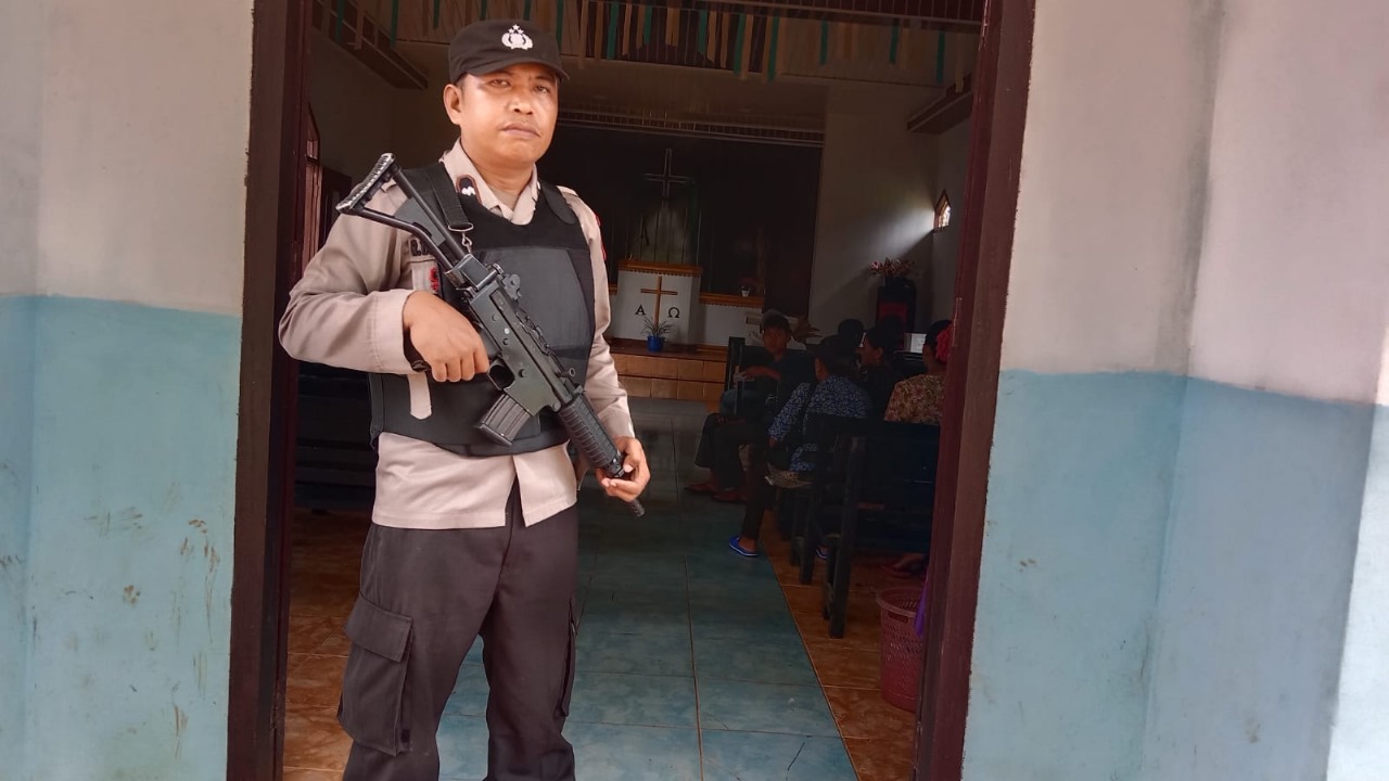 Polsek PU Tanding Amankan Ibadah Minggu di Gereja GKII Desa Kasie Kasubun