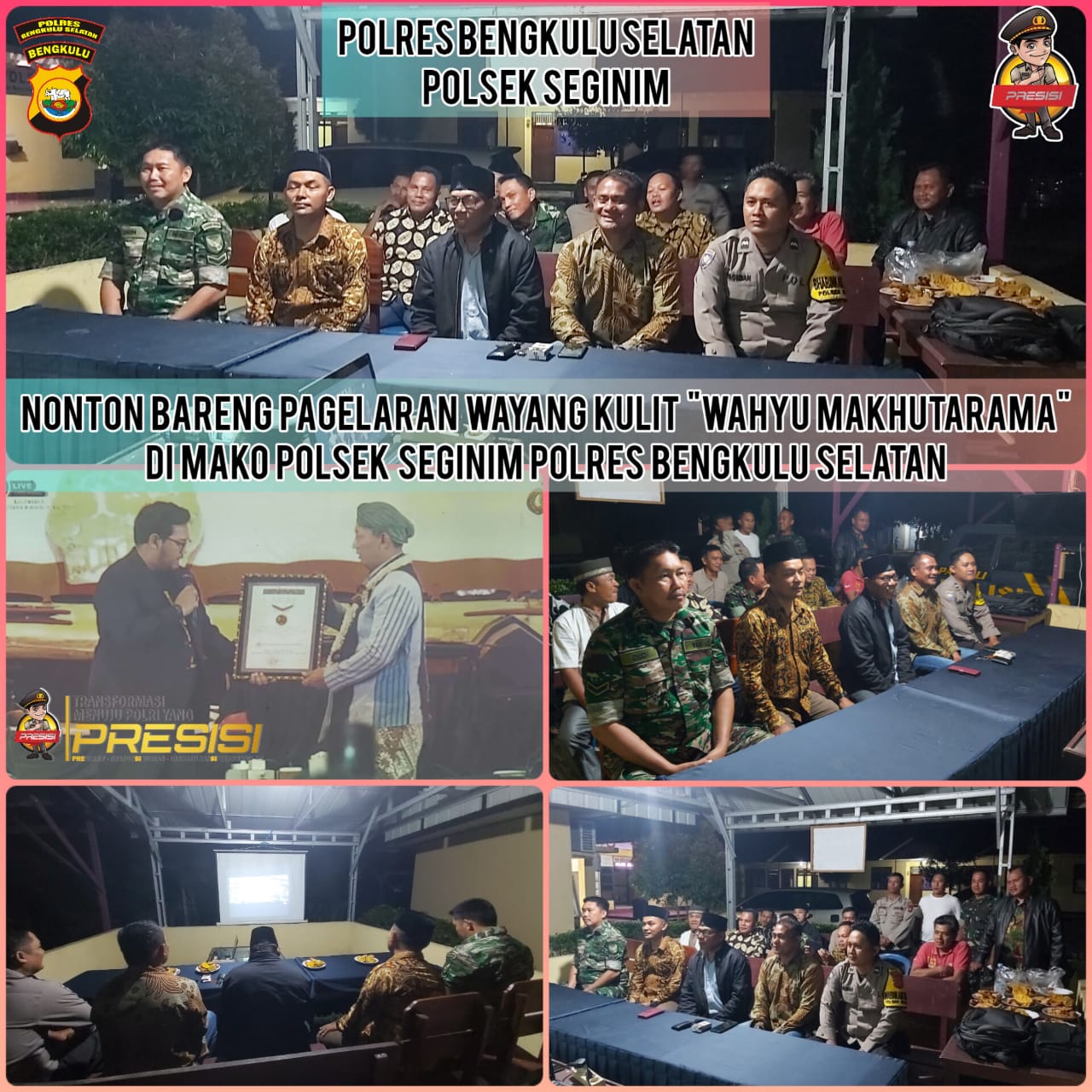 Polsek Seginim Gelar Nobar Virtual Wayang Kulit Wahyu Makutharama di Mapolsek