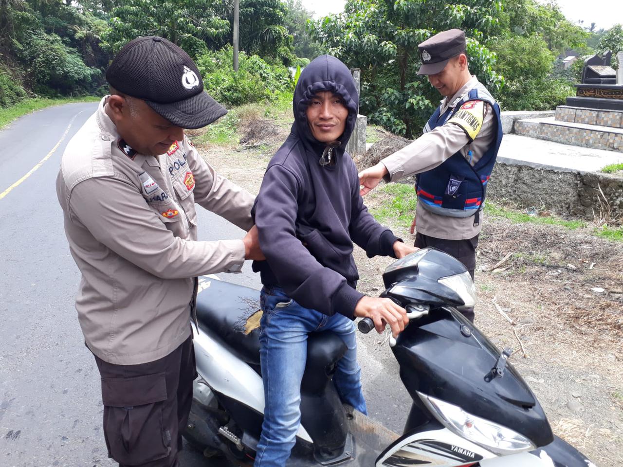 Rejang Lebong - Personel piket Polsek Sindang Kelingi Polres Rejang Lebong Polda Bengkulu, Jumat (17/2/2023) siang, melaksanakan razia Senpi dan Sajam di ruas jalan Desa Cahaya Negeri Kecamatan Sindang Kelingi Kabupaten Rejang Lebong.