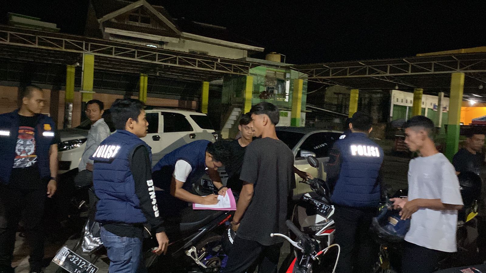 Selain menyasar tempat hiburan dan warung penjual Miras, petugas juga melaksanakan pengecekan remaja-remaja yang nongkrong di didepan Masjid Bhaitul Izzah dengan mengecek identitas dan kelengkapan surat-surat kendaraan. Hasilnya, 2 unit sepeda motor diamankan petugas.