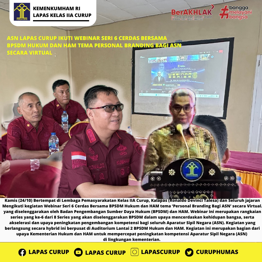 Curup - ASN Lapas Curup Ikuti Webinar Seri 6 Cerdas Bersama BPSDM Hukum dan HAM tema Personal Branding Bagi ASN, Kamis (24/10).
