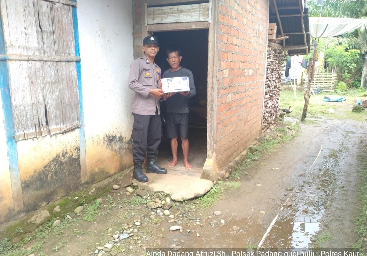 Kaur - Polsek Padang Guci Hulu, Polres Kaur Polda Bengkulu kembali menyalurkan bantuan sosial kepada warga kurang mampu dan atau yang membutuhkan, Sabtu (8/4/2023).