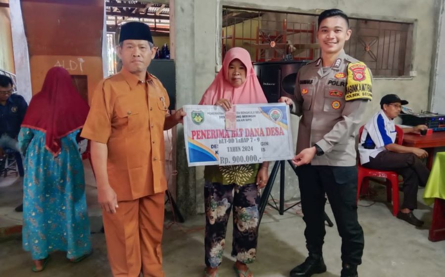 Cek Kondisi Perekonomian Bhabinkamtibmas Polsek Seginim, Menghadiri Giat Penyaluran BLT-DD Di Desa Tanjung Beringin