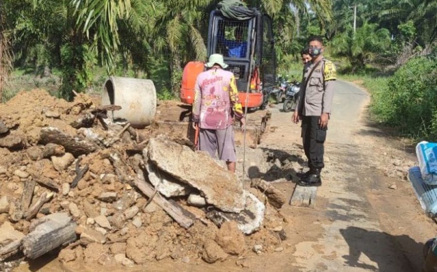 Bhabinkamtibmas Polsek Lubuk Pinang Ingatkan Warga Saat Melintas di Lokasi Perbaikan Jalan Amblas