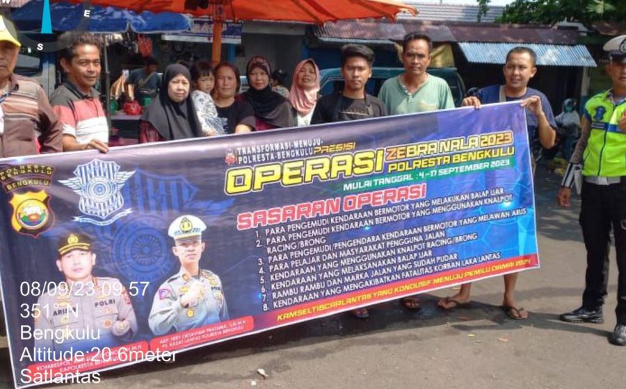 Ops Zebra Nala, Personel Satlantas Polresta Bengkulu Sampaikan Imbauan Tertib Berlalu Lintas di Pasar Minggu