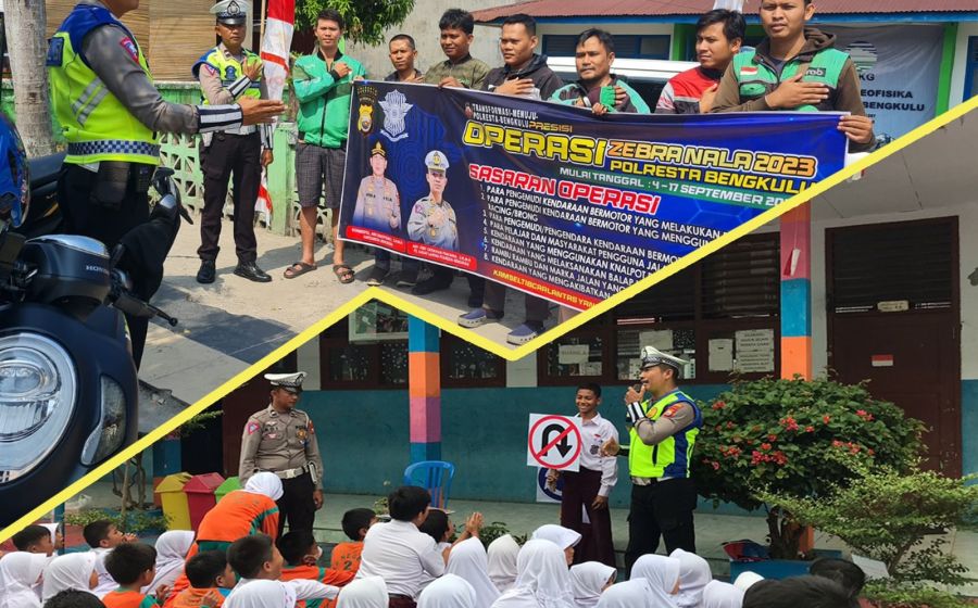 Ops Zebra Nala, Satlantas Polresta Bengkulu Berikan Binluh ke Drivel Ojol dan Edukasi para Pelajar