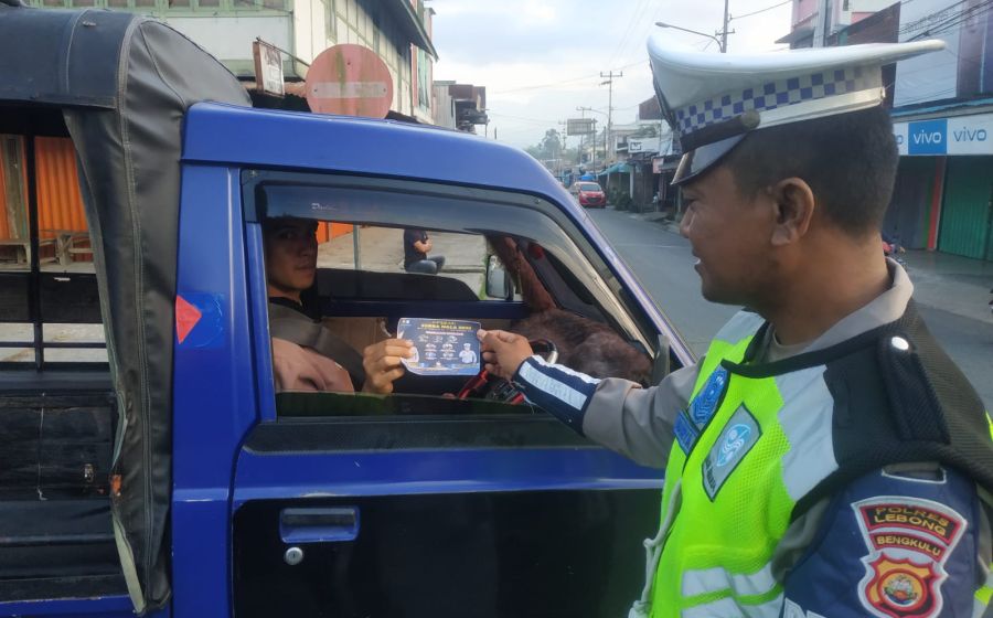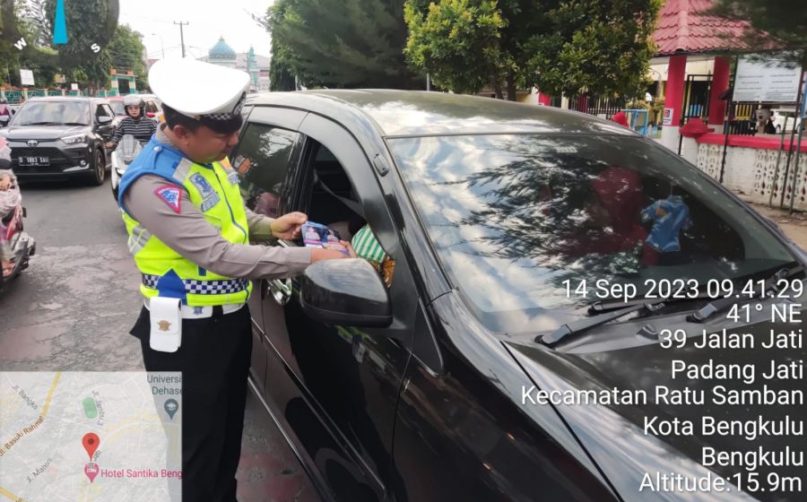 Ops Zebra Nala, Personel Satlantas Polresta Bengkulu Pasang Stiker dan Sampaikan Imbauan