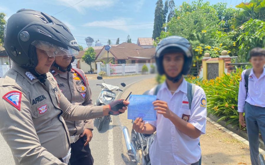 Ops Zebra Nala, Polsek Seginim Sampaikan Teguran Simpatik kepada Pengguna Sepeda Motor yang Tidak Menggunakan Helm Standar SNI