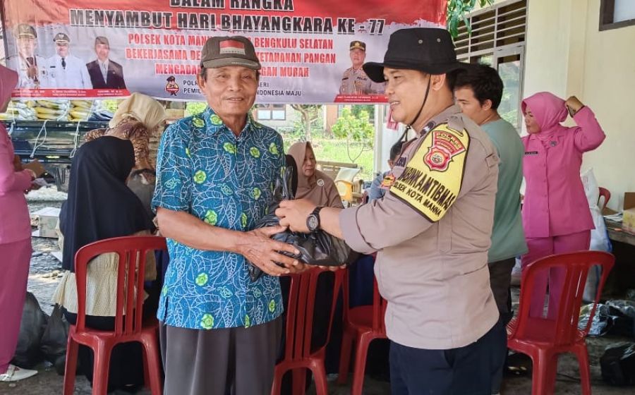 Sambut Hari Bhayangkara Ke-77, Polsek Kota Manna Gelar Pangan Murah dan Bansos