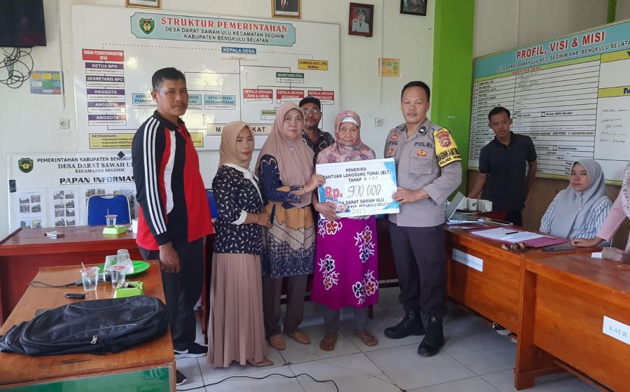 Bhabinkamtibmas Polsek Seginim Monitoring Penyaluran BLT DD Tahap 7 Desa Darat Sawah Ulu