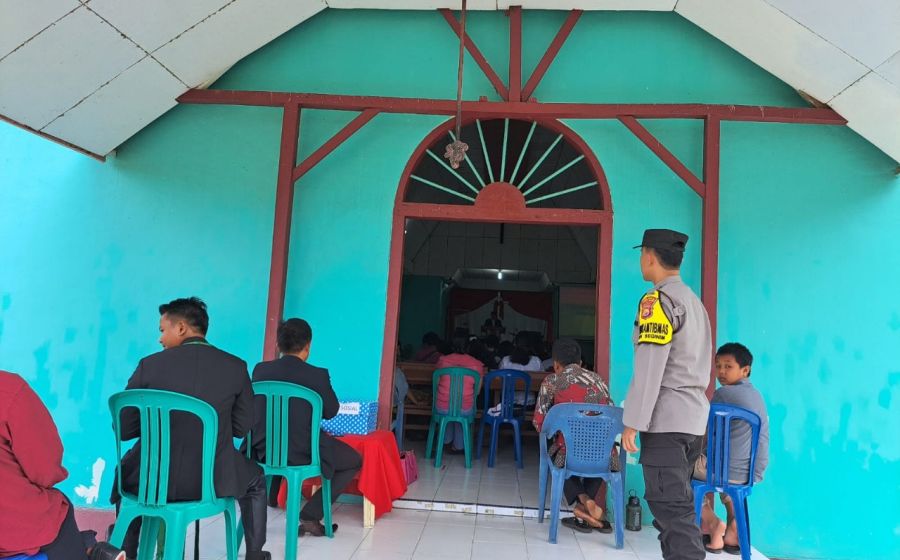 Babinkamtibmas Polsek Seginim Monitoring dan Berikan Pengamanan di Gereja