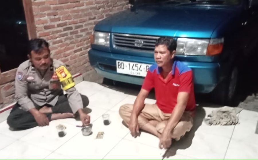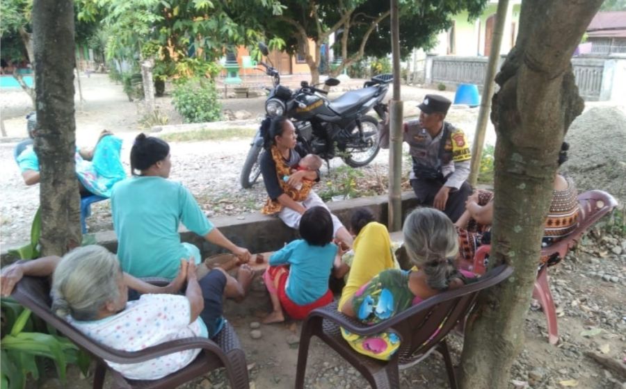 Bhabinkamtibmas Sambangi Warga dan Aparatur Desa Pino Baru, Sampaikan Imbauan Kamtibmas