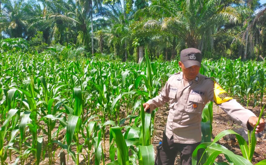 Bhabinkamtibmas Polsek Seginim Dukung Ketahanan Pangan dengan Pemantauan Kebun Jagung di Desa Padang Lebar