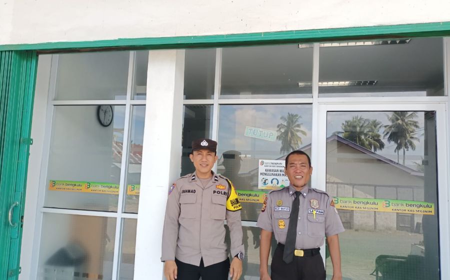 Sambang Dialogis, Bhabinkamtibmas Sampaikan Imbaian Kepada Security Bank Bengkulu Kelurahan Pasar Baru