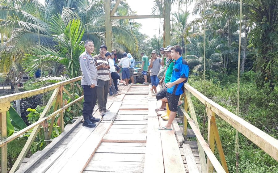 Wujud Sinergitas, Bhabinkamtibmas Polsek Seginim Bersama Warga Gotong Royong Perbaiki Jembatan