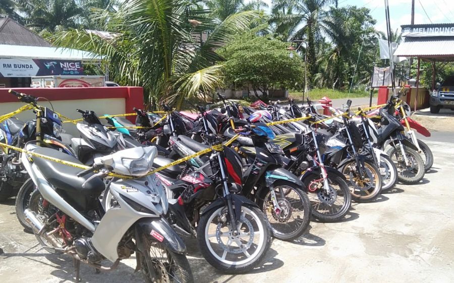 Polsek Semidang Alas Amankan 18 Sepeda Motor Berknalpot Brong dari 2 Sekolah