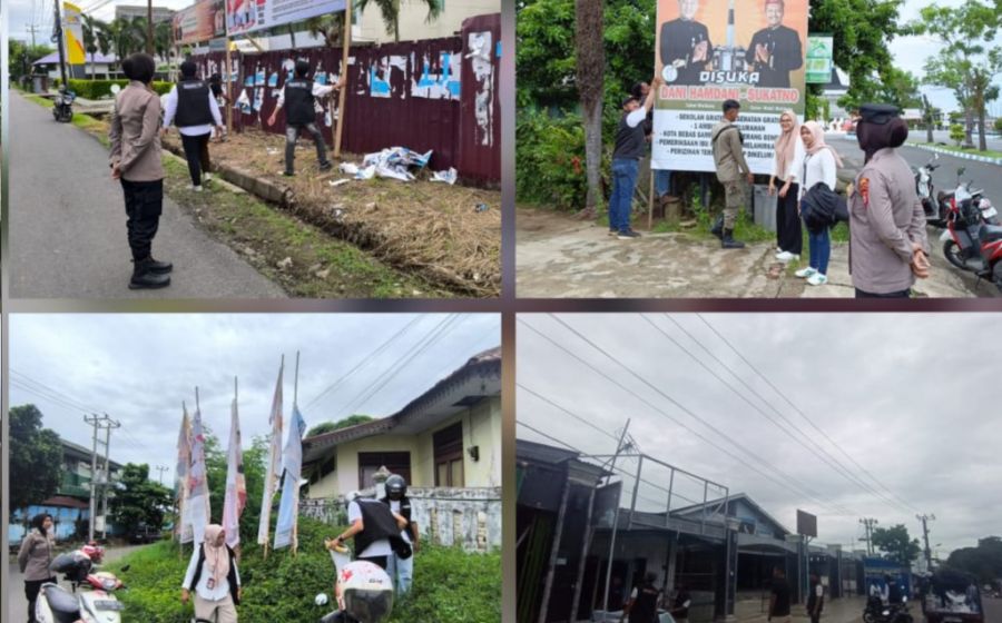 Unit Intelkam Polsek Teluk Segara Laksanakan Pengamanan Penertiban Alat Peraga Kampanye Pemilukada 2024 di Sungai Serut