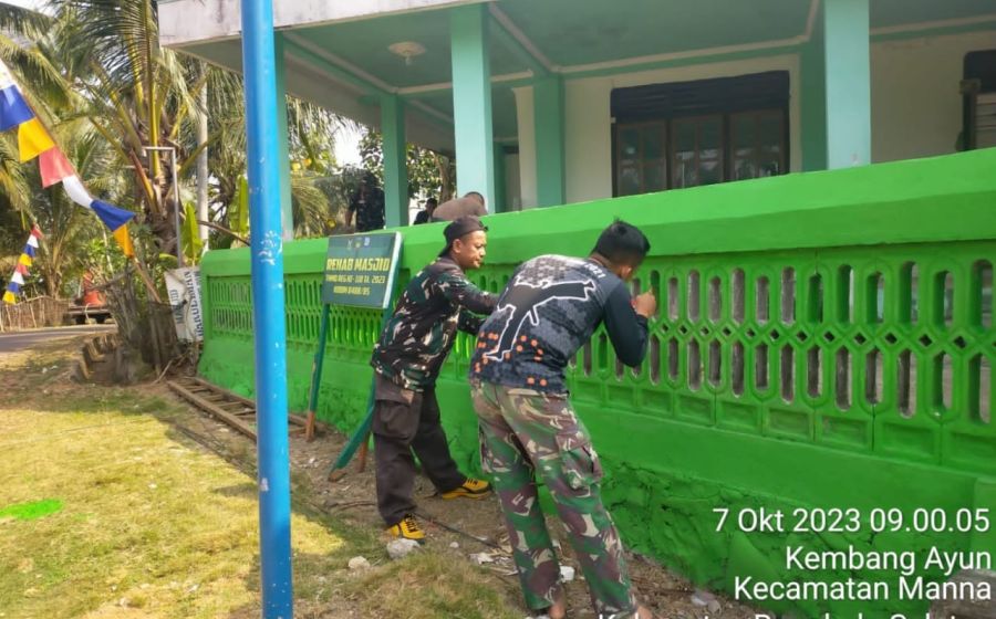 TNI-Polri, Perbaiki Mesjid dan Pos Kamling Dalam Program TMMD Tahun 2023