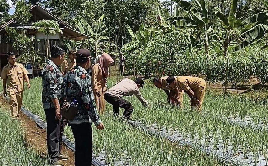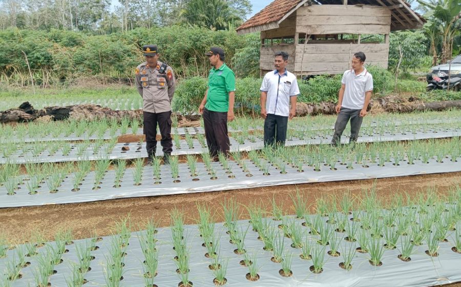 Kapolsek Padang Jaya Melakukan Pengamatan dan Monitoring Perkembangan Tanaman Bawang Merah