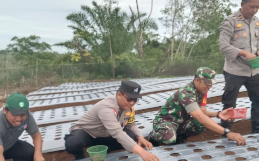 Program Ketahan Pangan, Bhabinkamtibmas Polsek Padang Jaya Ikuti Giat Penanaman Bawang Merah