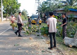 Polsek Teramang Jaya Bersama Warga Bersihkan Pohon Tumbang