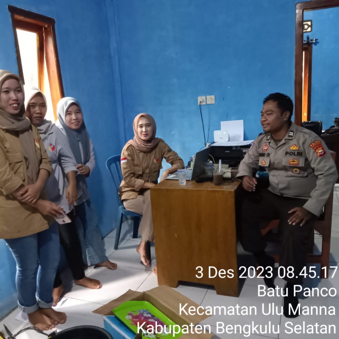 Bengkulu Selatan – Dalam rangka menjaga dan menciptakan situasi Kamtibmas yang Kondusif guna mendukung kelancaran dan keamanan pelaksanaan Pemilu serentak tahun 2024, dalam tahapan Kampanye, personel Bhabinkamtibmas Polsek Kota Manna Polres Bengkulu Selatan Polda Bengkulu melalui Satgas Preventif OMB Nala 2023-2024, Aipda Romi.F melaksanakan sambang ke Kantor Panitia Pemilihan Kecamatan (PPK) dan Panwascam Pasar Manna dan Kota Manna Kabupaten Bengkulu Selatan, Minggu (03/12/23)